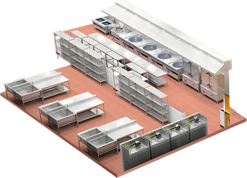 根據客戶提供的資料及廚房標準,結合當地餐飲特點與中祎商用廚房設備理念,與客戶及管理公司協商建立廚房餐飲設施的要求和流程,提供整個廚房的概念設計.